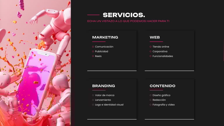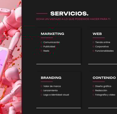 Diseñamos tu marca, llevamos tus redes, construimos tu web y lo llenamos todo de contenido