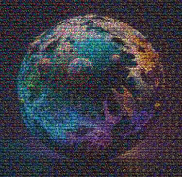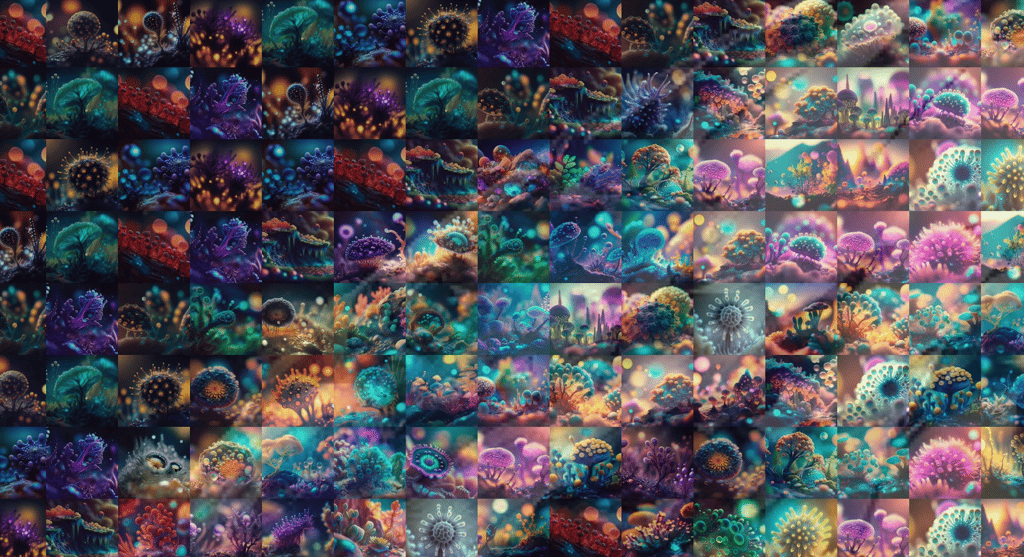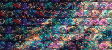 Mediante la generación de imágenes con Inteligencia Artifical y tecnología de composición paramétrica, he creado este mundo y su pintoresca biosfera.